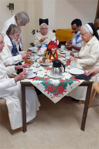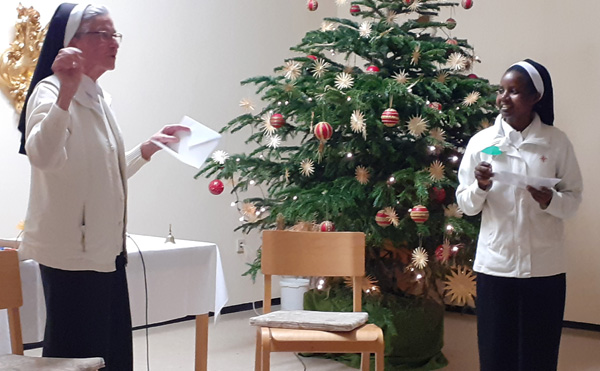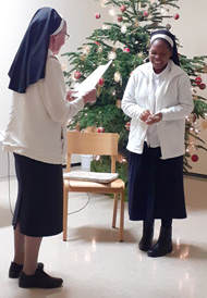 Am Sonntag, dem 5. Dezember, fand im Kloster die traditionelle Nikolausfeier statt. Nach einigen Liedern und zwei Geschichten ging es zum gemütlichen Teil über. Diese Feier ist bei allen sehr beliebt, so dass auch viele Schwestern von der Pflegestation teilnahmen. Es war ein fröhliches Miteinander. Zum Schluss wurden noch die Gebetszettel verteilt. Jede Schwester erfährt dabei, für wen sie im kommenden Jahr beten wird. Auch das ist eine schöne und alte Tradition.