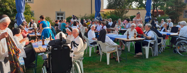 Nach einer langen „Feier-Abstinenzzeit“ fand am 22. Juli erstmals wieder ein gemeinsames Fest aller Mitarbeiterinnen und Mitarbeiter des Klosters, der Schwestern, sowie der ehrenamtlicher Helfer statt. Das ausgezeichnete Wetter machte es möglich, im schönen Innenhof des Klosters zu feiern.