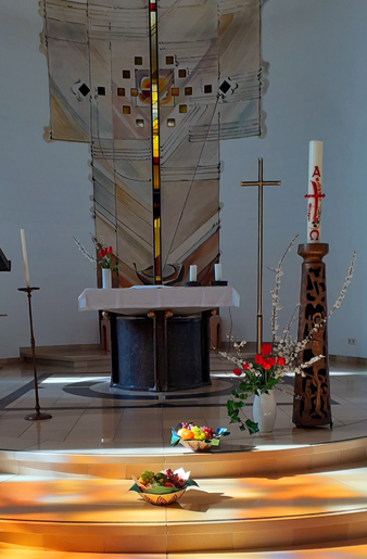 Es war eine schlichte Feier, aber mit einem sehr würdigen Gottesdienst, den Pfarrer Volker Weyres aus Köln feierte. Durch die lebendige Gabenprozession unserer sambischen und simbabwischen Schwestern kam ein Hauch Weltkirche in unsere Kapelle.