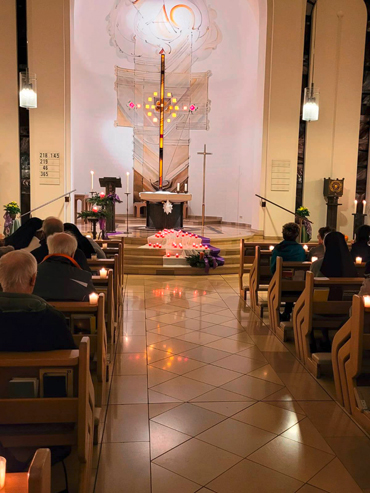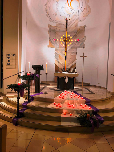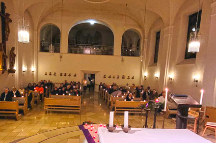 Am Vorabend des Festes der Unbefleckten Empfängnis Mariens fand in der Kapelle des Klosters ein Abend der Lichter statt. Viele Besucher folgten der Einladung, so dass es ein richtiges Lichtermeer gab. Die jungen Schwestern aus Sambia, Simbabwe und Kenia eröffneten die meditative Stunde mit einem afrikanischen Lied und Tanz. In der Folge wechselten sich adventliche Lieder mit besinnlichen kurzen Impulsen sowie Zeiten der Stille ab. Mit einem gemeinsamen Gebet, einem Liedruf und abschließendem afrikanischen Gesang endete der Abend der Lichter.