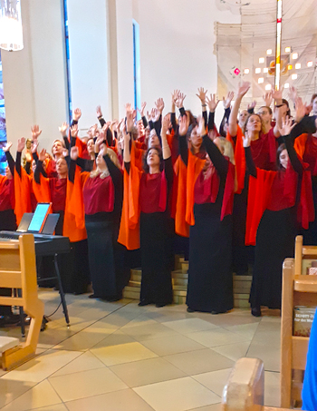 Der Gospelchor St. Lukas aus München war zu einem Probenwochenende im Kloster Strahlfeld. Sie fühlten sich sehr wohl in der Atmosphäre des Hauses und hatten den Wunsch, ein abendliches Konzert zu geben, an dem auch die Schwestern teilnehmen könnten. Der Vorschlag wurde gerne angenommen und so gab es für die Schwestern und zahlreichen Musikfreunde, die sich eingefunden hatten, ein unvergessliches Konzert. |