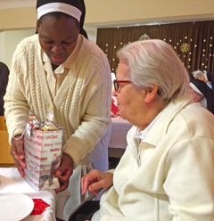 Die Nikolausfeier und die Weihnachtsfeier sind die best besuchten Gemeinschaftstreffen im Kloster! Da sie bereits am Nachmittag stattfinden, können auch alle Schwestern, die auf der Kranken- und Pflegestation leben, teilnehmen. Die Feier begann mit einigen religiösen Texten, einer lustigen Weihnachts-geschichte und bekannten Weihnachtsliedern. Danach folgte der gemütliche Teil mit viel Erzählen und dem Genießen der köstlichen Weihnachtsplätzchen aus der Klosterbäckerei mit Kaffee, Tee oder auch Punsch. Als Abschluss erhielt jede Schwester – nach alter Tradition – eine Weihnachtstüte mit kleinen Überraschungen.