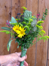 Vor dem Gottesdienst werden die Kräuterbuschen zum Verkauf angeboten und in diesem Jahr waren alle sehr schnell verkauft. Es hätten sogar noch einige mehr sein können. Der Erlös kommt stets der Pflege der Steinhäuflkapelle zugute.