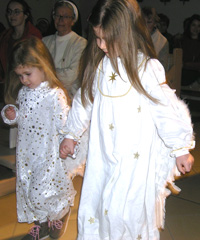 Die Generalprobe findet zur Freude der Schwestern in der Kapelle des Klosters statt, so dass auch sie das immer wieder berührende weihnachtliche Ereignis miterleben können. Es ist einfach schön zu sehen, mit welcher Begeisterung, Ernsthaftigkeit und auch Hingabe die Akteure ihre jeweilige Rolle im Weihnachtsgeschehen spielen.
