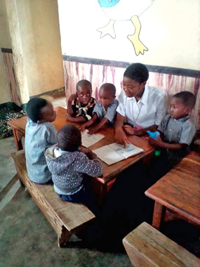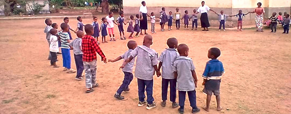 Unsere Kandidatinnen im Vor-Noviziat zeigen großes Interesse an diesen Kindern und sind für das Ernährungsprogramm zuständig. Die Spielgruppe erweist sich im Übrigen als gute Vorbereitung auf die Yengwe Regierungsschule, die wir leiten (1.-12. Klasse).